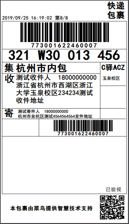 针对菜鸟提供的一联标准面单,进行以下说明: